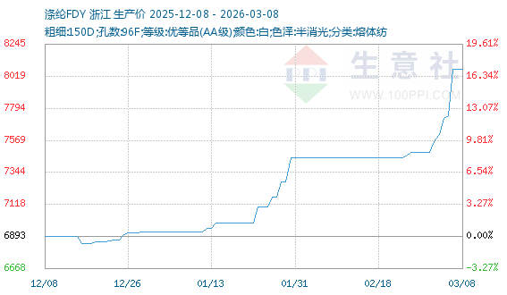3月6日生意社涤纶FDY基准价为7743.33元/吨