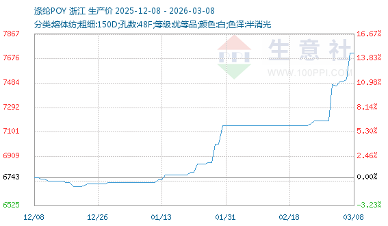 3月6日生意社涤纶POY基准价为7493.75元/吨