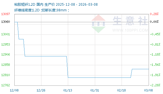 3月4日生意社粘胶短纤1.2D基准价为12840.00元/吨