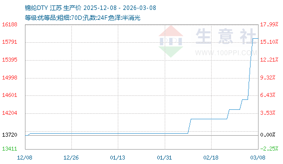 3月6日生意社锦纶DTY基准价为15320.00元/吨