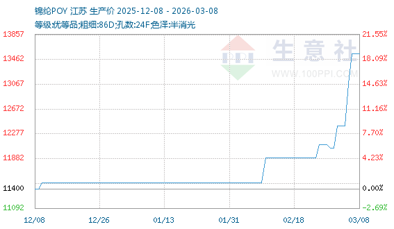 3月6日生意社锦纶POY基准价为13075.00元/吨